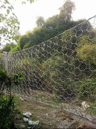 環(huán)形網(wǎng)也是使用于被動(dòng)防護(hù)系統(tǒng)的產(chǎn)品,均采用直徑3mm,抗拉強(qiáng)度不低于1700MPa的高強(qiáng)度鋼絲盤結(jié)數(shù)圈成環(huán),并相互套接而成,具有極強(qiáng)的幾何變形和彈塑性變形能力,由此所帶來的柔性網(wǎng)自身強(qiáng)大的能量吸收能力,從而降低了對(duì)系統(tǒng)其他構(gòu)件承載能力的要求。