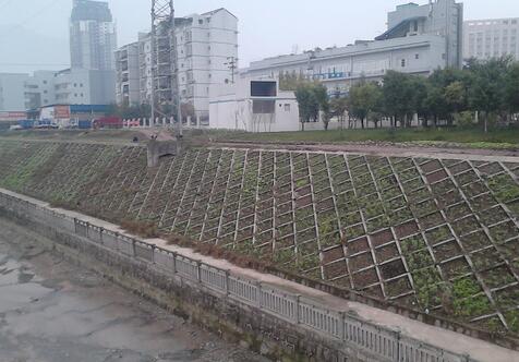 格構(gòu)加固技術(shù)是利用漿砌片石、現(xiàn)澆鋼筋混凝土或預(yù)制預(yù)應(yīng)力混凝土進(jìn)行邊坡坡面防護(hù),并利用錨桿或錨索加以固定的一種邊坡加固技術(shù)。格構(gòu)的主要作用是將邊坡坡體的剩余下滑力或土壓力、巖石壓力分配給格構(gòu)結(jié)點(diǎn)處的錨桿或錨索,然后通過錨索傳遞給穩(wěn)定地層,從而使邊坡坡體在由錨桿或錨索提供的錨固力的作用下處于穩(wěn)定狀態(tài)。邊坡格構(gòu)加固技術(shù)具有布置靈活、格構(gòu)形式多樣、截面調(diào)整方便、與坡面密貼?呻S坡就勢(shì)等顯著優(yōu)點(diǎn),并且框格內(nèi)視情況可掛網(wǎng)、植草、噴射混凝土進(jìn)行防護(hù),也可用現(xiàn)澆混凝土板進(jìn)行加固。