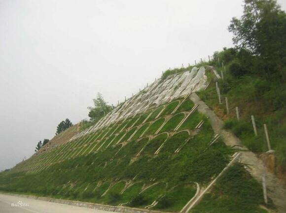 第二,不斷完善坡體固結(jié)系統(tǒng)。在高速公路的施工過程,有很多邊坡在開挖到設(shè)計(jì)要求的標(biāo)準(zhǔn)高度后,還未來的及修建擋土墻等防護(hù)工程時,在幾次降雨的作用下就產(chǎn)生了邊坡塌陷和邊坡滑移的現(xiàn)象。還有一些邊坡在順利完成了擋土墻和護(hù)坡的施工后,過了一段時間,也出現(xiàn)了坡面開裂、坍塌等坡面破壞現(xiàn)象。這些都是由于坡體的固結(jié)系統(tǒng)不夠穩(wěn)固所導(dǎo)致的,因此不斷完善邊坡的坡體固結(jié)系統(tǒng)對于整個邊坡的防治工作具有非常重要的意義。一般情況下,公路路塹邊坡采用的工程防護(hù)措施是各種形式的漿砌片石護(hù)坡或混凝土拱形骨架護(hù)坡,骨架內(nèi)植草綠化、坡面噴混凝土等類型。